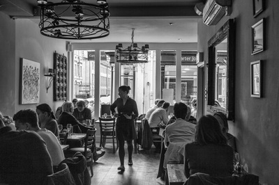 Located in a quiet street just off the main shopping area, the buzzy, cozy and relaxed atmosphere of the restaurant features an open kitchen, where diners can watch there food being cooked fresh to order.